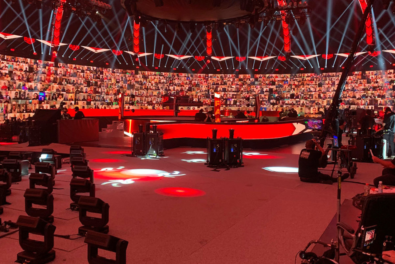 Bringing the virtual fan experience display system together was a complex technological feat which required filling over 1500 LED tiles with WWE’s most dedicated fans streaming in from all around the world while simultaneously keeping WWE and technical partners connected throughout the broadcast, all while adhering to strategic planning guidelines in compliance with COVID-19 regulations. Deploying a combination of cloud-based control, SRT video transport technology, and remote intercom systems, made it possible for the majority of the game-day operations staff to work off-site. With moderators, producers, and support staff working remotely, local team members were able to monitor the real-time render engines on premise while adhering to proper social distancing protocols.