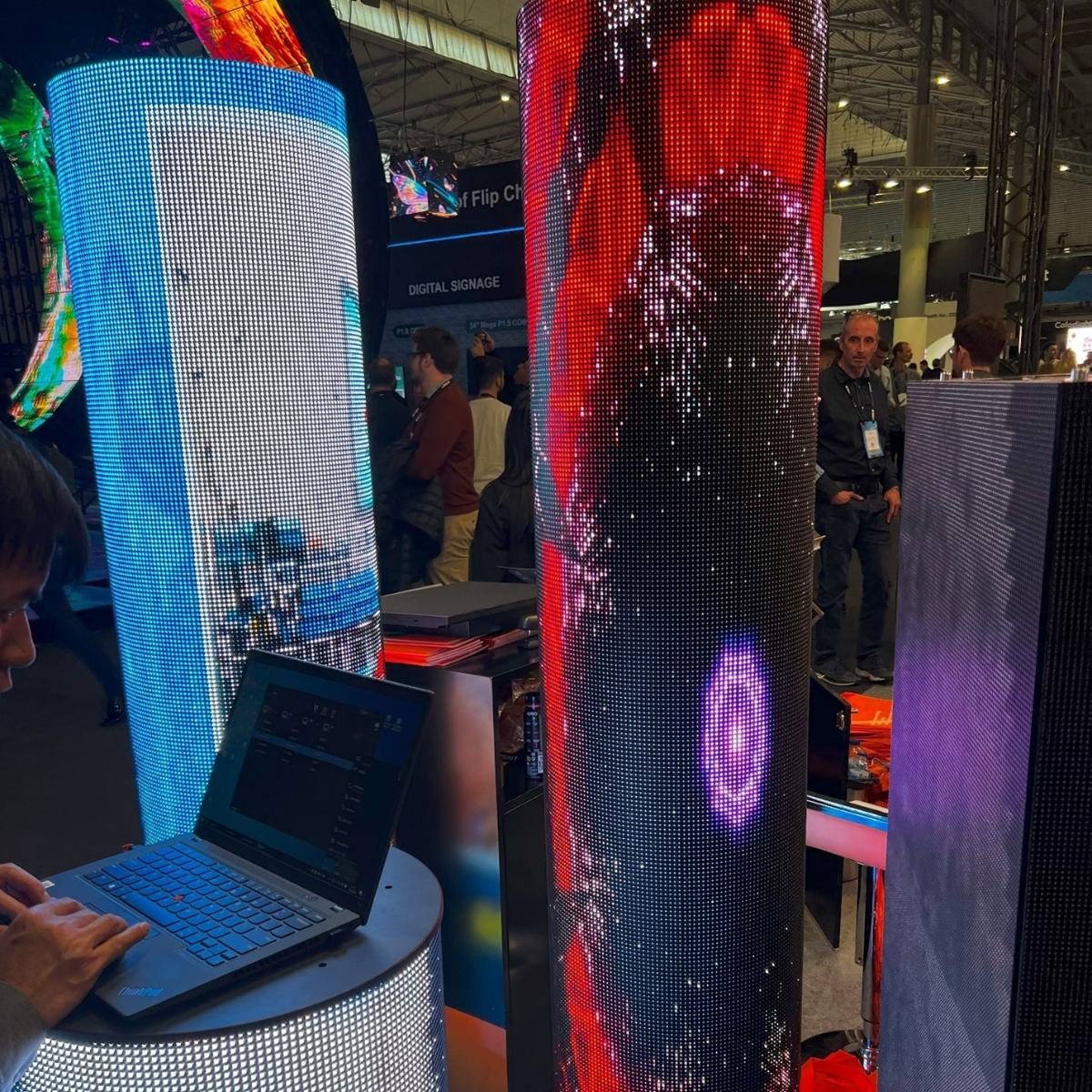 UNILUMIN is developing DCI-compliant flat screens with approvals from all major studios except Disney. These screens will be essential for DCI-required flat screen systems in the giant screen market. Their transparent, flexible LED panels are gaining attention due to their smaller pitch, lower power consumption, and extended panel availability. Additionally, pre-printed LED panels—designed to mimic marble, brick, or custom designs—offer creative solutions for various architectural aesthetics.