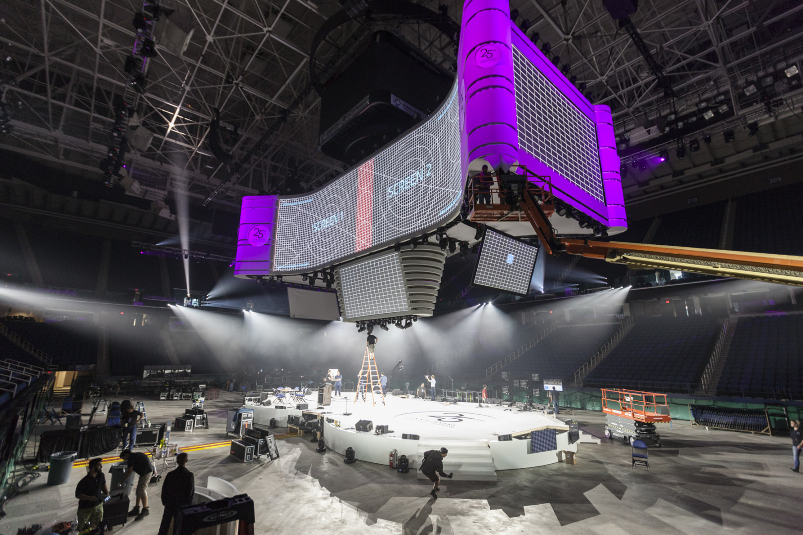 Event producer, Ashley Events, collaborated with Quince Imaging to construct a custom display design for Market America | SHOP.COM | MAIC 2017. In partnership with Ashley Events, Quince constructed a seamless display solution to span 4,500 square feet of screen space. Together, they seamlessly integrated high-resolution content graphics for hundreds of presentations.